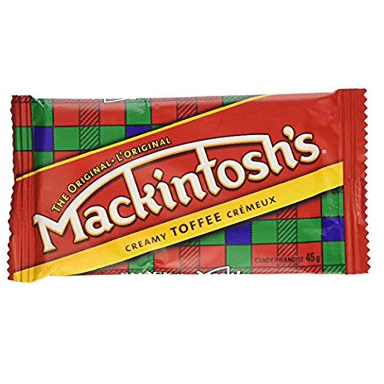 Visada lengvai atpažįstamas pagal savo firminę tartano pakuotę, Mackintosh's Toffee yra kietas kaip plyta ir taip pat gali sugadinti dantis. Norėčiau pamatyti statistiką, kiek tiksliai žmonių iš burnos ištraukė plombą arba tikrą dantį. Prisimenu, kaip vaikystėje juo užkandžiaudavau, mėgaudavausi saldžios karamelės skoniu iki neišvengiamos paniką sukeliančios akimirkos, kai saldainis prisitvirtina prie vieno iš tavo krūminių dantų ir tu būsi tikras, kad jis niekada nebus pašalintas. Neskaitant vaikystės traumų, šio užkandžio istorija yra ilga, nes jis skanus: kanadiečiai „Macks“ mėgaujasi nuo 1890 m., įtraukdami Mackintosh's Toffee į mūsų 100 metų senumo Kanados saldainių klubą.