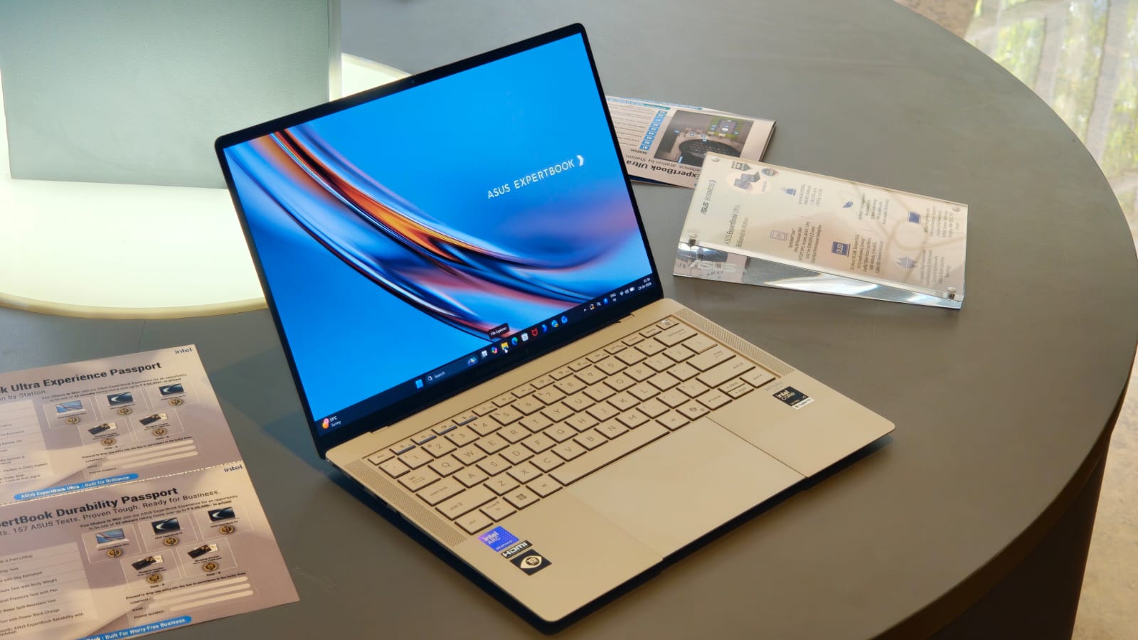„Asus“ siūlo „ExpertBook Ultra“ kaip kol kas aukščiausios klasės verslo nešiojamąjį kompiuterį, todėl nesunku suprasti, kodėl. Jis pasižymi itin lengvu dizainu, sveriančiu vos 0,99 kg, o pagamintas naudojant magnio ir aliuminio lydinį. Pristatymo renginyje pasisukome Ultra ir jis atrodė gražiai. Apdaila spindi saulės šviesoje, todėl visa patirtis tampa dar aukščiausios kokybės.